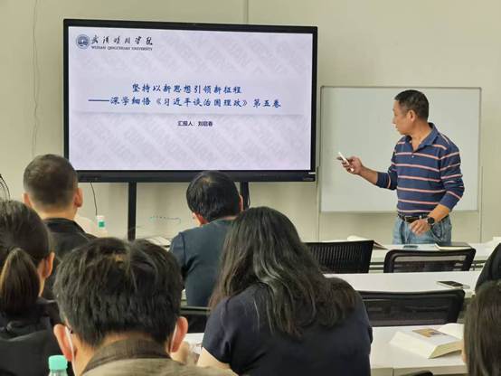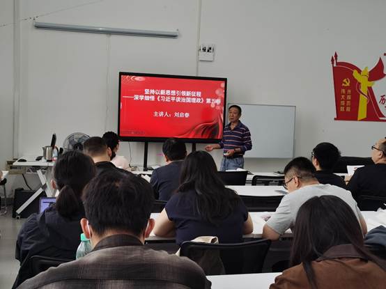 2025年10月15日,马克思主义学院院长刘启春教授带领马克思主义学院全体党员同志深入学习领会《习近平谈治国理政》第五卷(以下简称“第五卷”)的核心要义、精神实质和丰富内涵,引导广大党员干部群众自觉用党的创新理论武装头脑、指导实践、推动工作,凝聚起奋进新征程、建功新时代的磅礴力量。