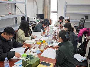 (教研室老师在交流工作)