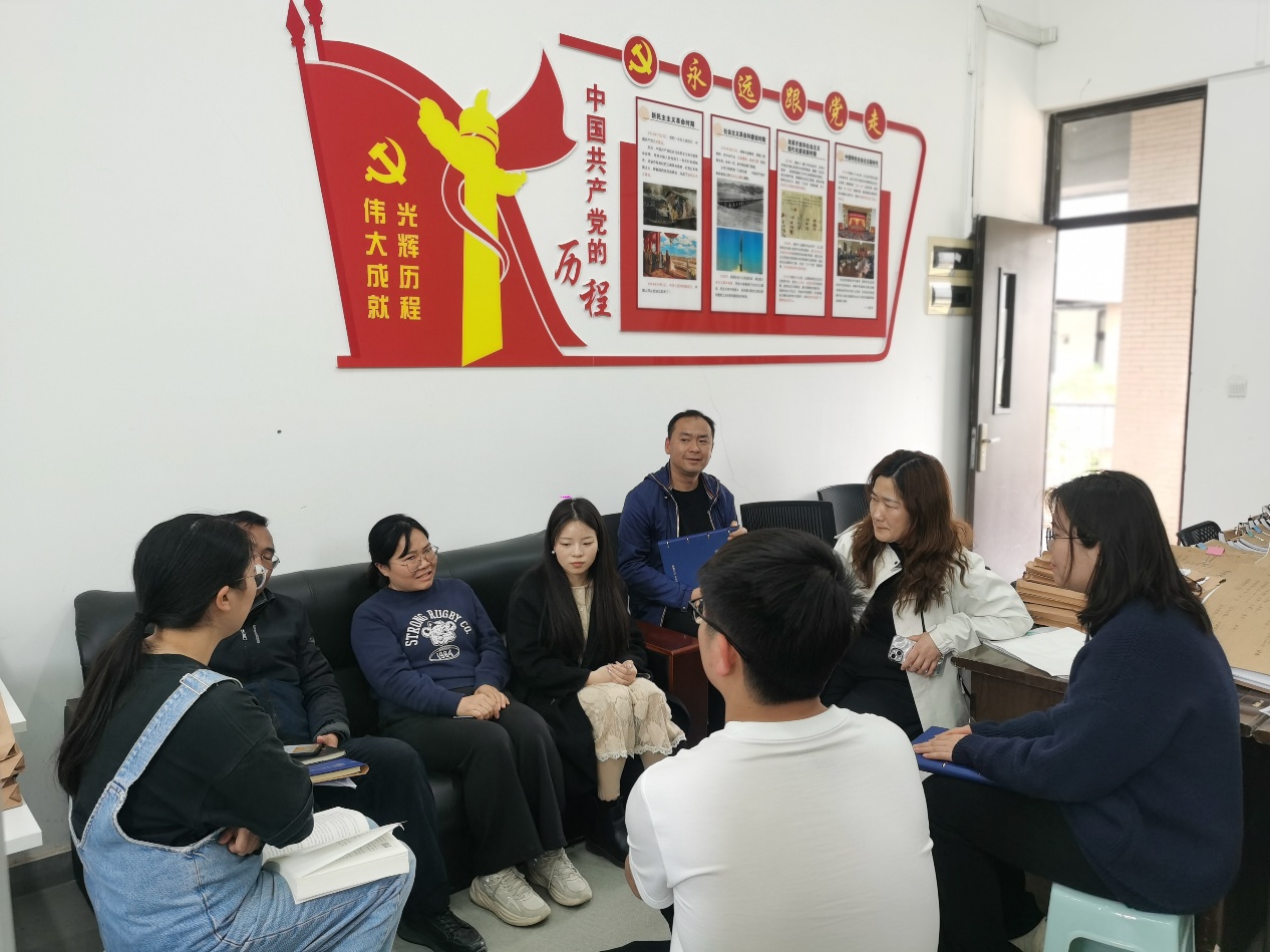 (教研室老师在交流工作)